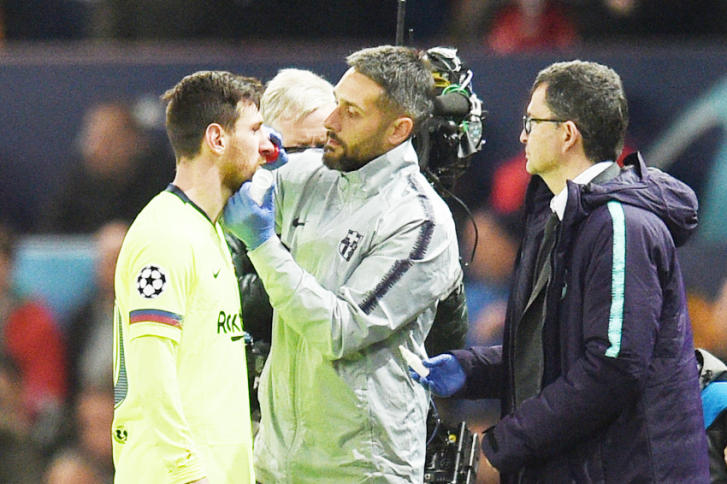 وأنهى ميسي اللقاء على ملعب "أولد ترافورد" مع كدمات وتورم حول أنفه وخده، وخضع لفحوص طبية في برشلونة الخميس لتحديد مدى إصابته.