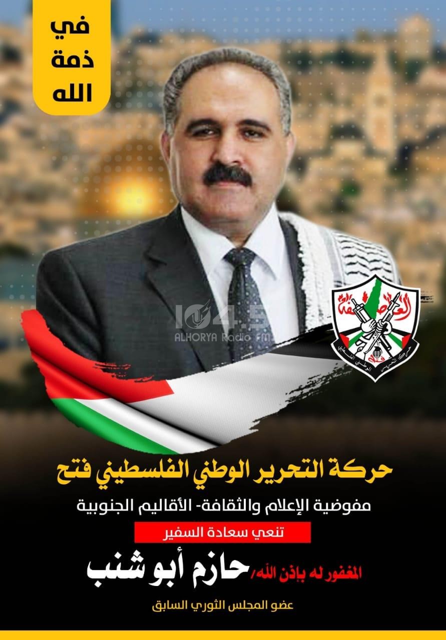 ثمة ما يوجع القلب يا صديقى ... منذ إبصارك النور من نصف قـــرن أو يزيد قليلا فى بيت دافىء وأســرة محافظة تربيت فى كنفها لأب كريم ( د. حسين ) كان من الخلية الأولى لإذاعة ( صوت فلسطين ) من القاهرة منذ نشأة منظمة التحرير الفلسطينية فى ستينيات القرن الماضى ومن ثم المســؤول الإعلامى فى أقليم الكويت ، والذى رســــــخ فيك هذه القيم النبيلة والإنتماء الـــــوطنى وبلاغة الحديث ... مــــــــرورا بإلتحاقك بالعمل فى العلاقات العامة فى جامعة الازهر بغزة وتعينك ناطقا باسم فتح عام 2007 ومن ثم إنتخابك عضــوا فى المجلس الثوري عام 2009 وعملك كســـــــــفيرفى وزارة الخارجية وأخيرا تعينك عضوا فى المجلس الإستشارى للحركة ، تلك المــــواقع لم تغير مـــــن روحك وحلاوة معشرك .. داهمك المرض الخبيث فجأة فلم تشعر أحدا بوجعك .. تألمت وحيدا ولم تستسلم إلى أن فاضت روحك الطاهرة بسكينة إلى بارئها فكانت المفاجأة والصـــــدمة يا صديقى لكل من أحبك ... دون قبلة الـــــوداع الأخيرةعلى جبينك ... نستذكرك بحب ووجع ، نحتسبك عند الله مع الشهداء والصديقين